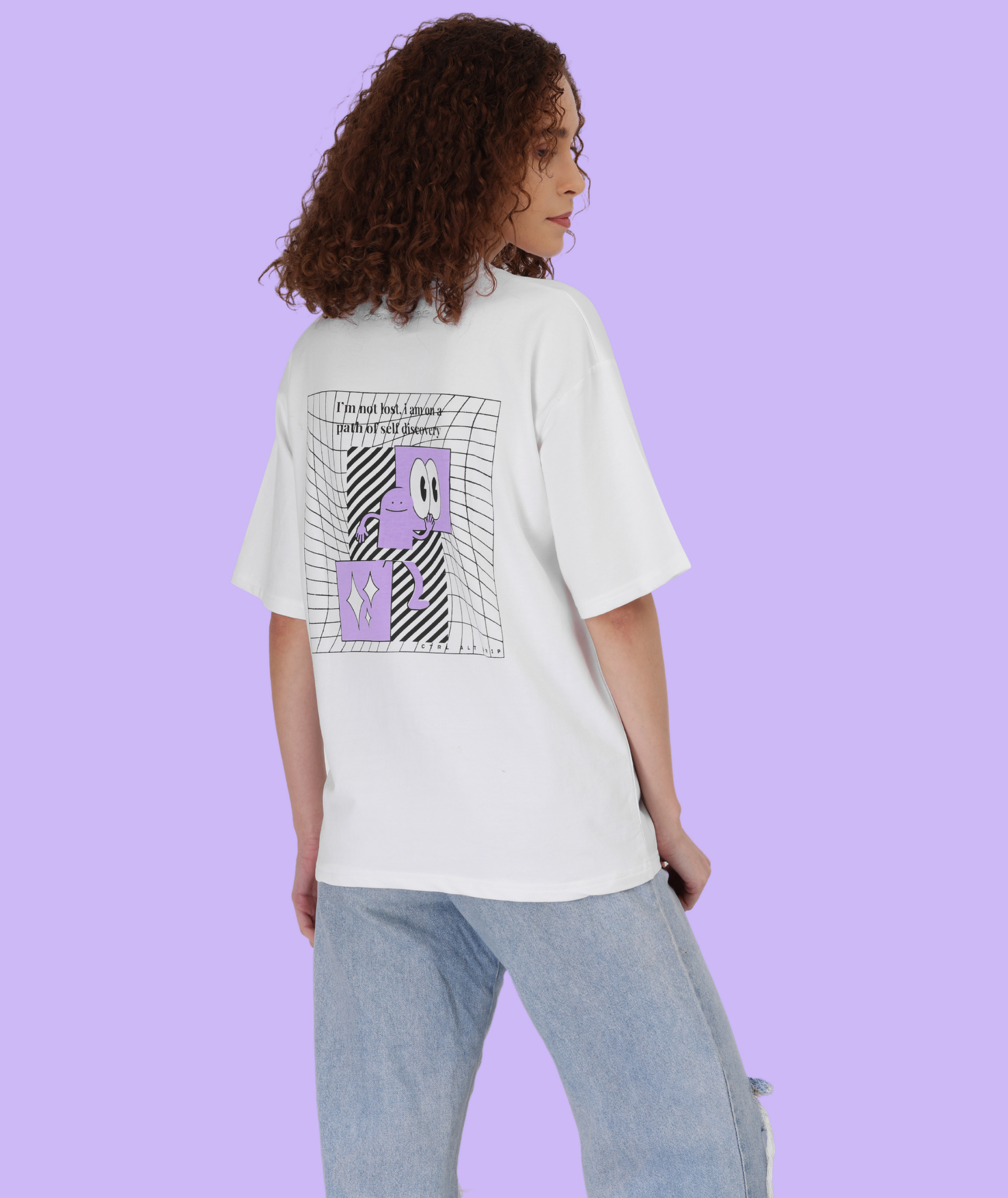 White Overzised Baggy Meaningful Graphic Print T Shirt. Celebrate the journey of self-discovery—wear your path, inspire the world. 100% Cotton T Shirt.