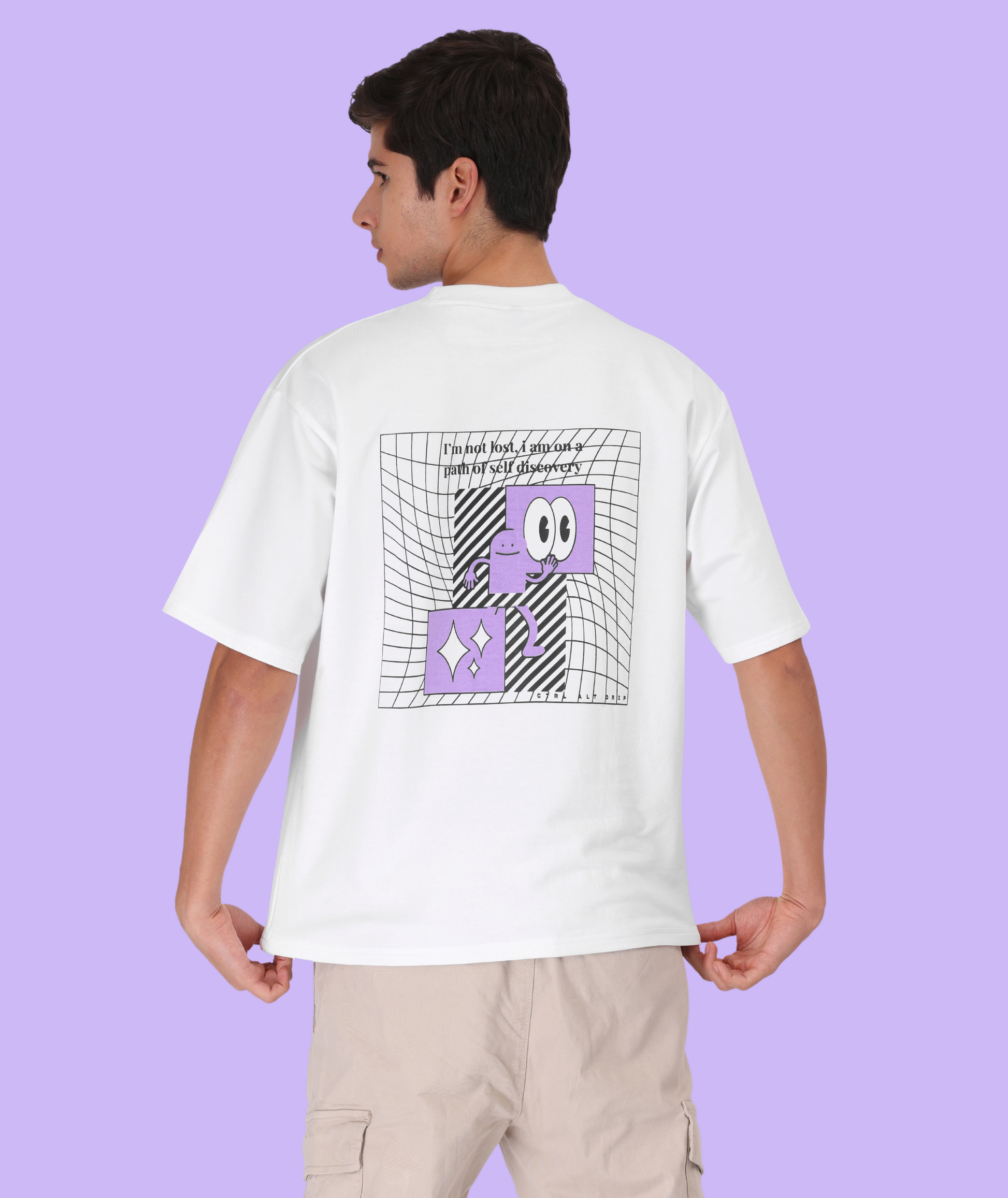 this oversized hip hop tshirt is perfect for summer, the cotton is super nice and soft but also tough so you dont sweat like crazy even when it’s boiling out. the graphic is mad unique, nothing you normally see—got that odd criss-cross pattern and the “path of self-discovery” thing that’s kinda funky. ppl always stop me asking where i got it from, total head-turner. comfy as hell, looks dope, and feels like it’s gonna last ages.