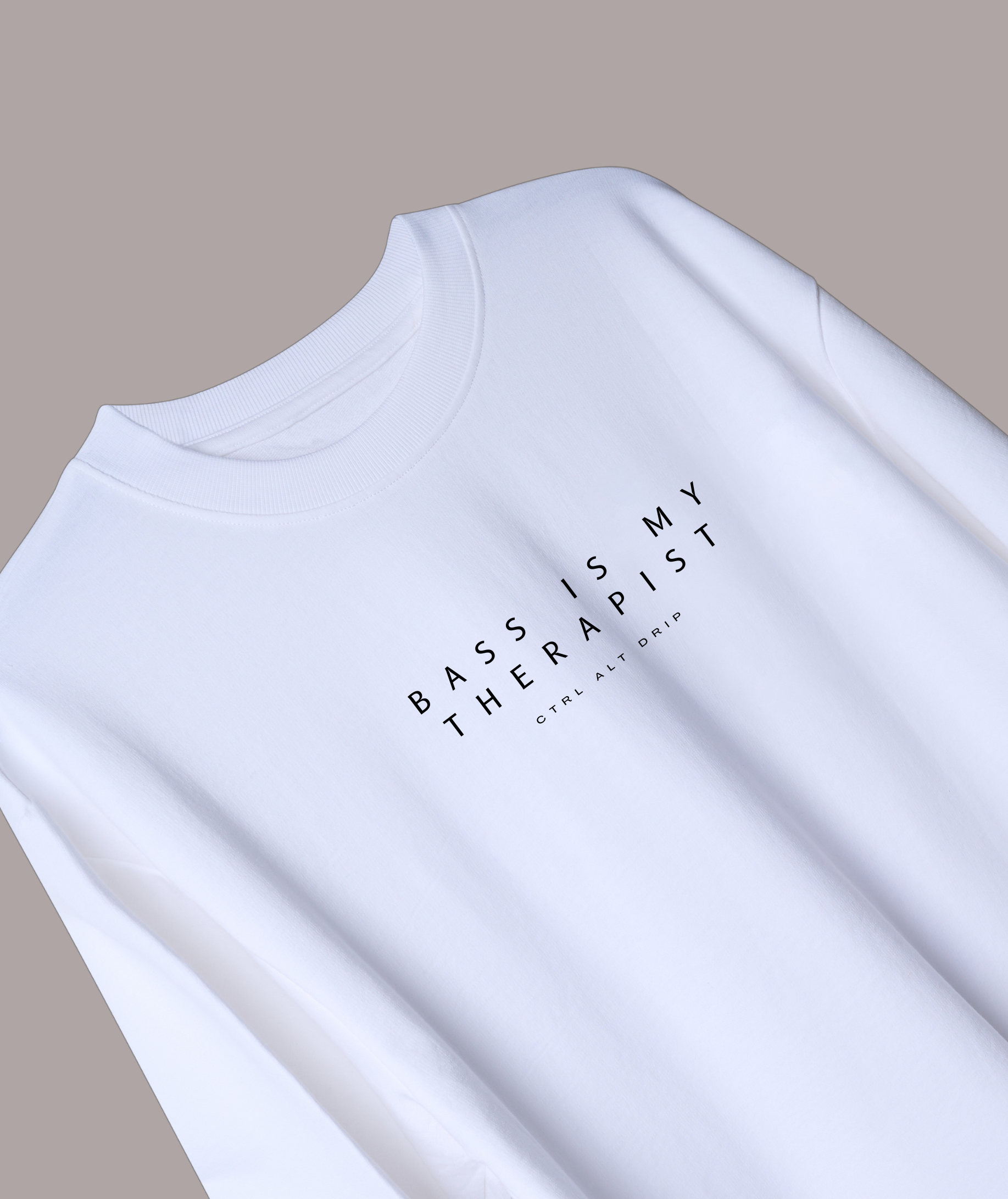 The phrase "Bass Is My Therapist" sits boldly, a declaration for those who find solace in the deep vibrations of sound. It’s more than just music—it’s a release, a way to disconnect from the noise of the world and immerse in the healing power of bass.