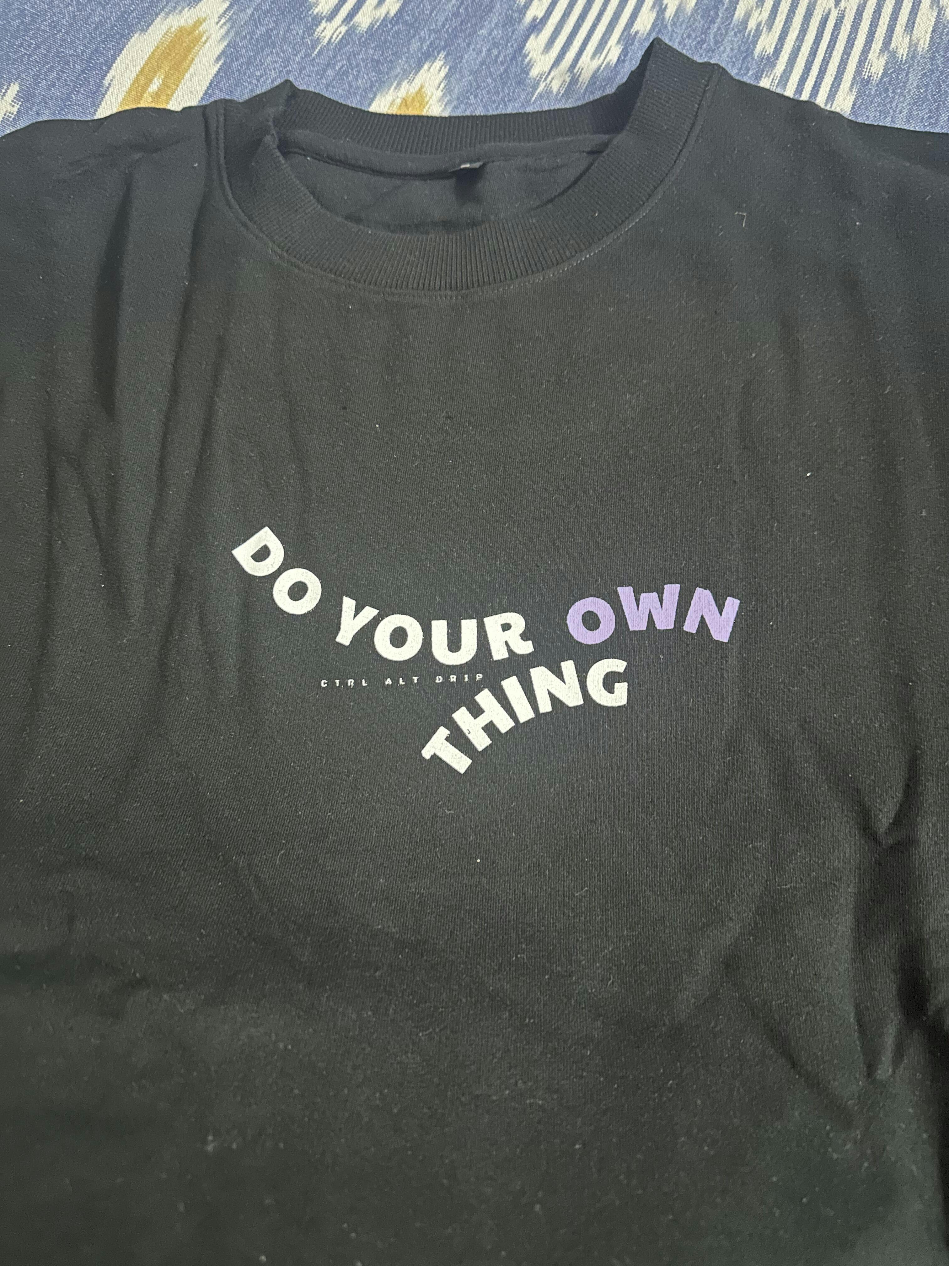This Oversized tee is a manifesto for the independent spirit. On the front, a bold declaration: "DO YOUR OWN THING." It's a call to break free, embrace your individuality, and forge your own path.