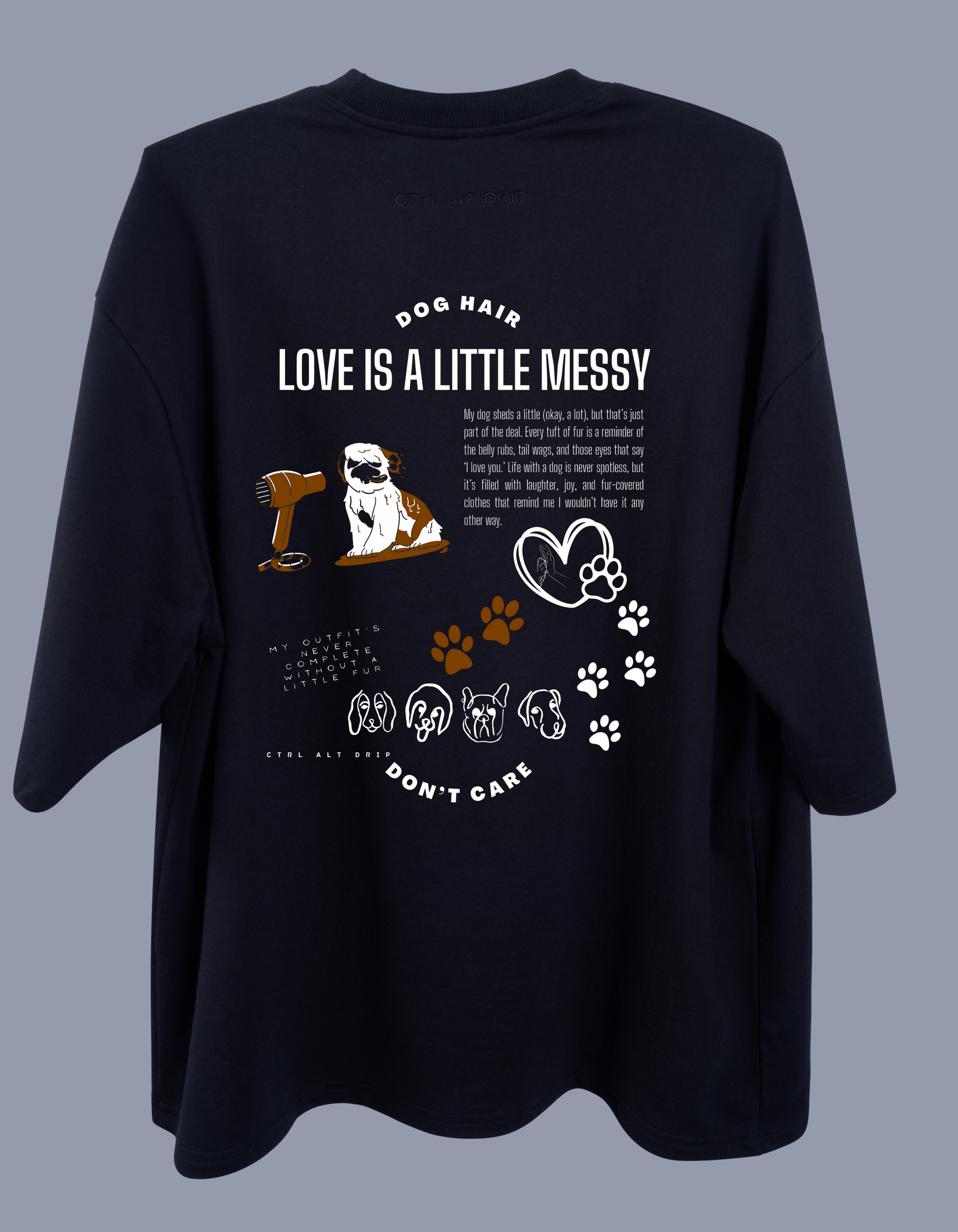 This tee is for all the dog lovers who know the best moments in life are filled with fur, wagging tails, and unconditional love. It's a reminder to embrace every paw print and every joyful mess.