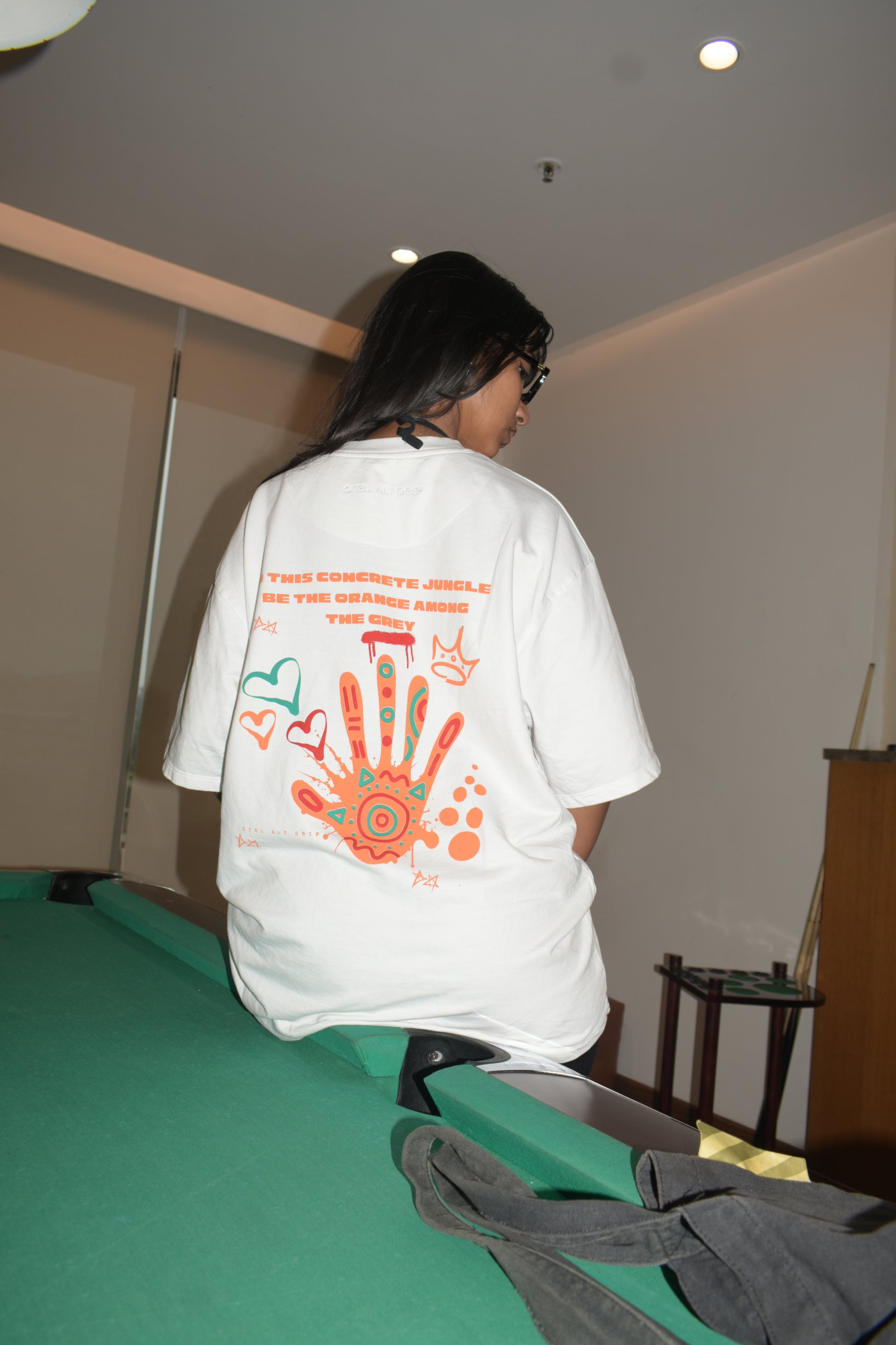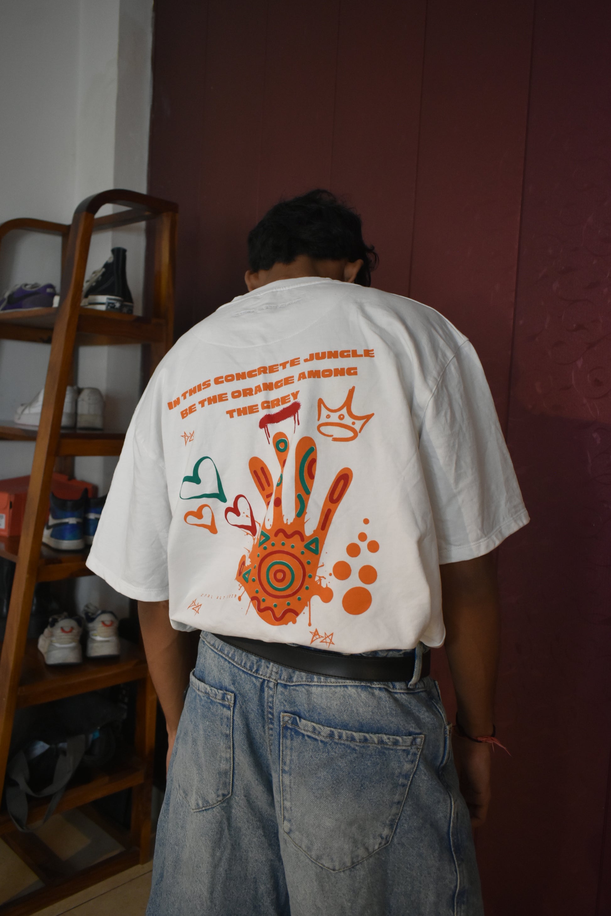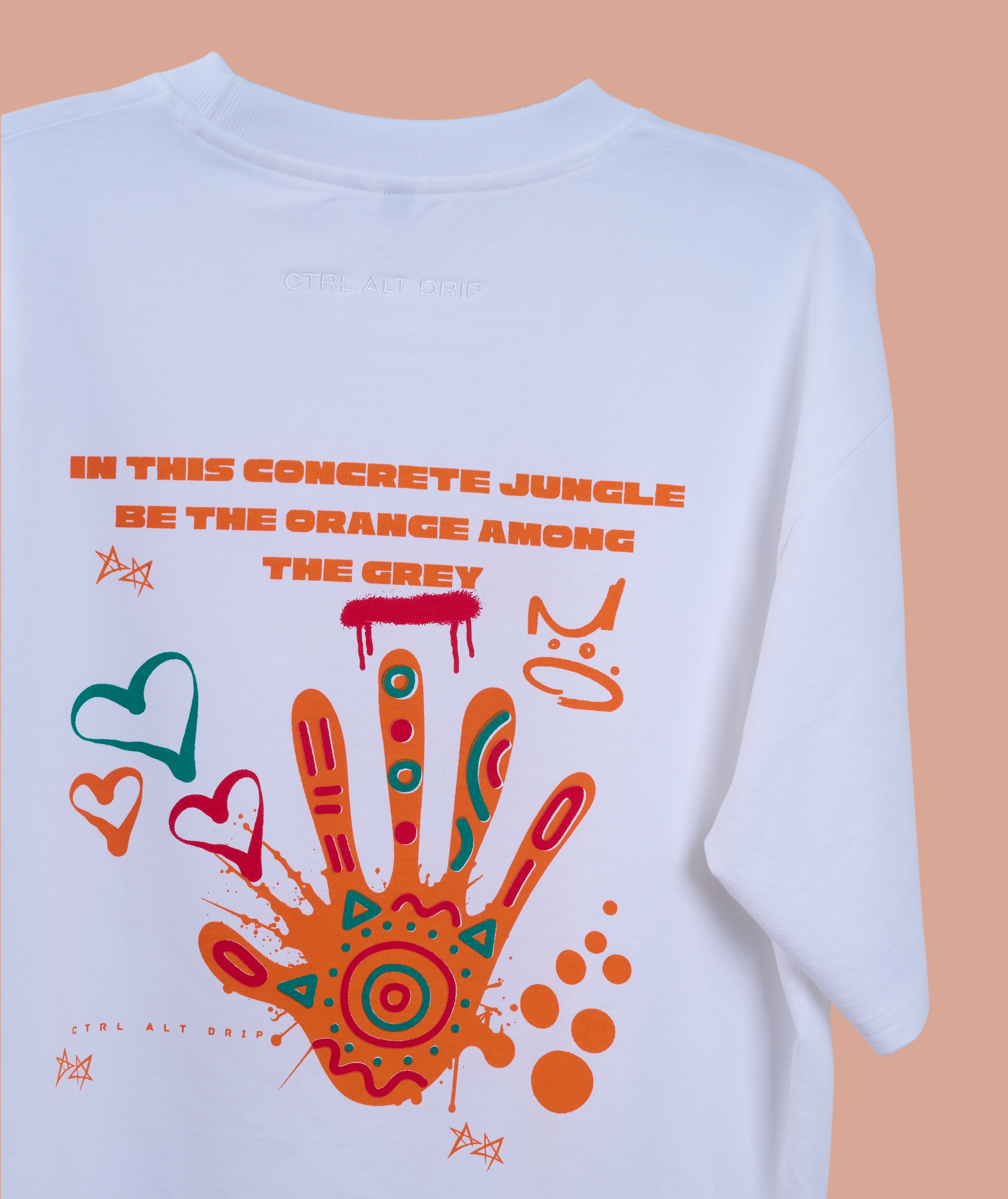 On the Back: "In this concrete jungle, be the orange among the grey." - A message of standing out from the crowd and embracing your unique flair.