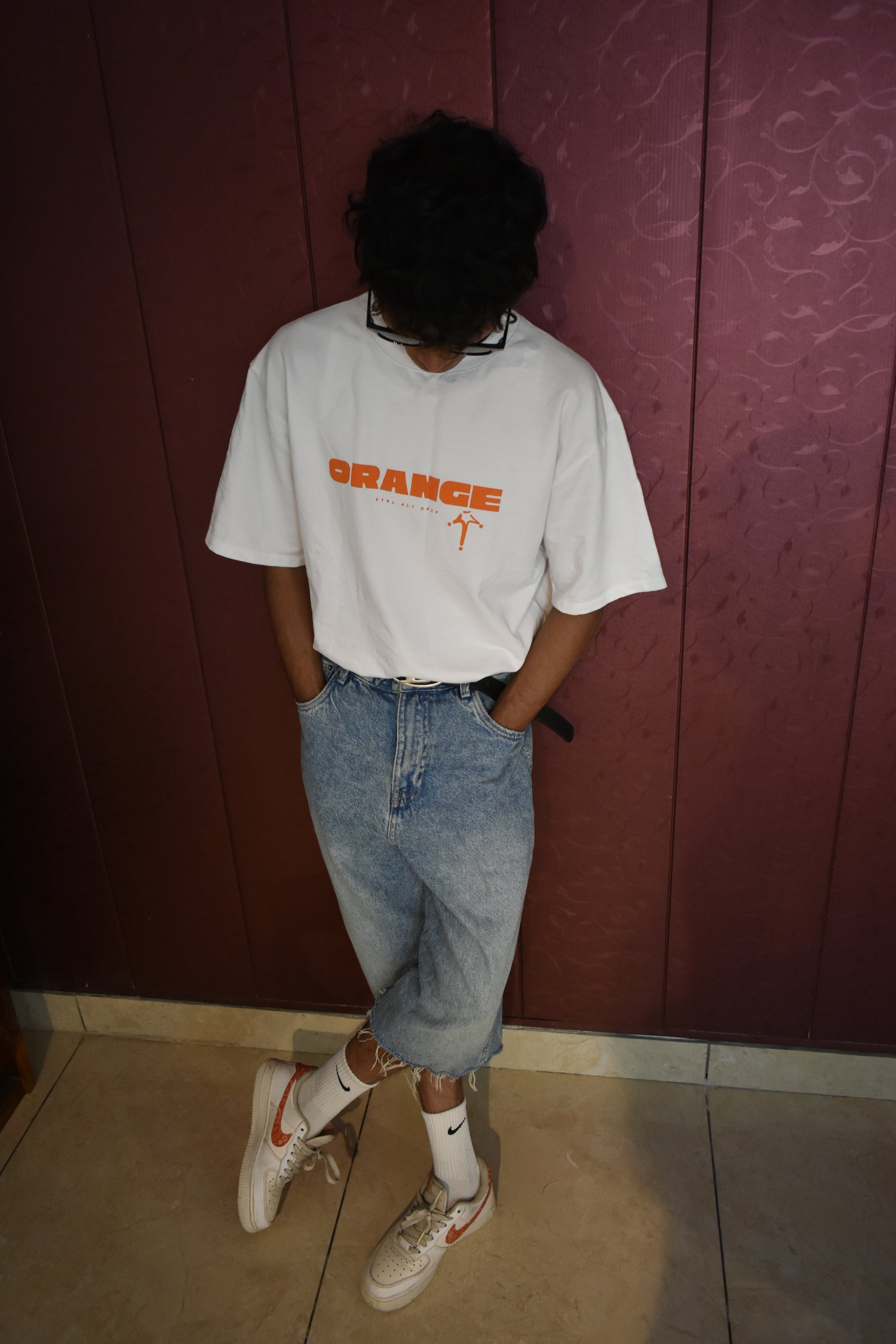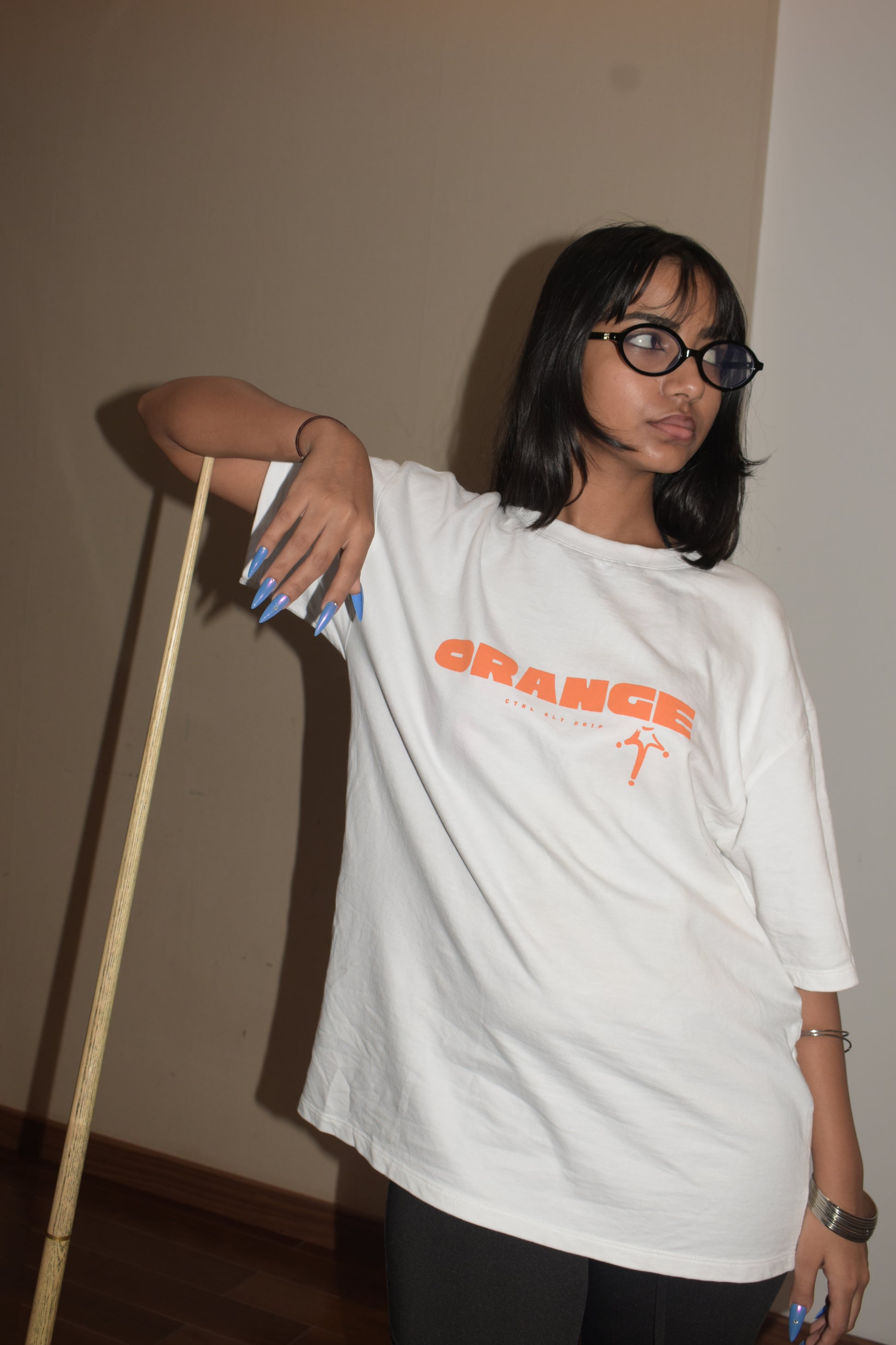 This Oversized statement tee isn't afraid of a bold splash of color. Featuring a vibrant orange front and a powerful message on the back, it's the perfect way to express your individuality in a world of conformity.