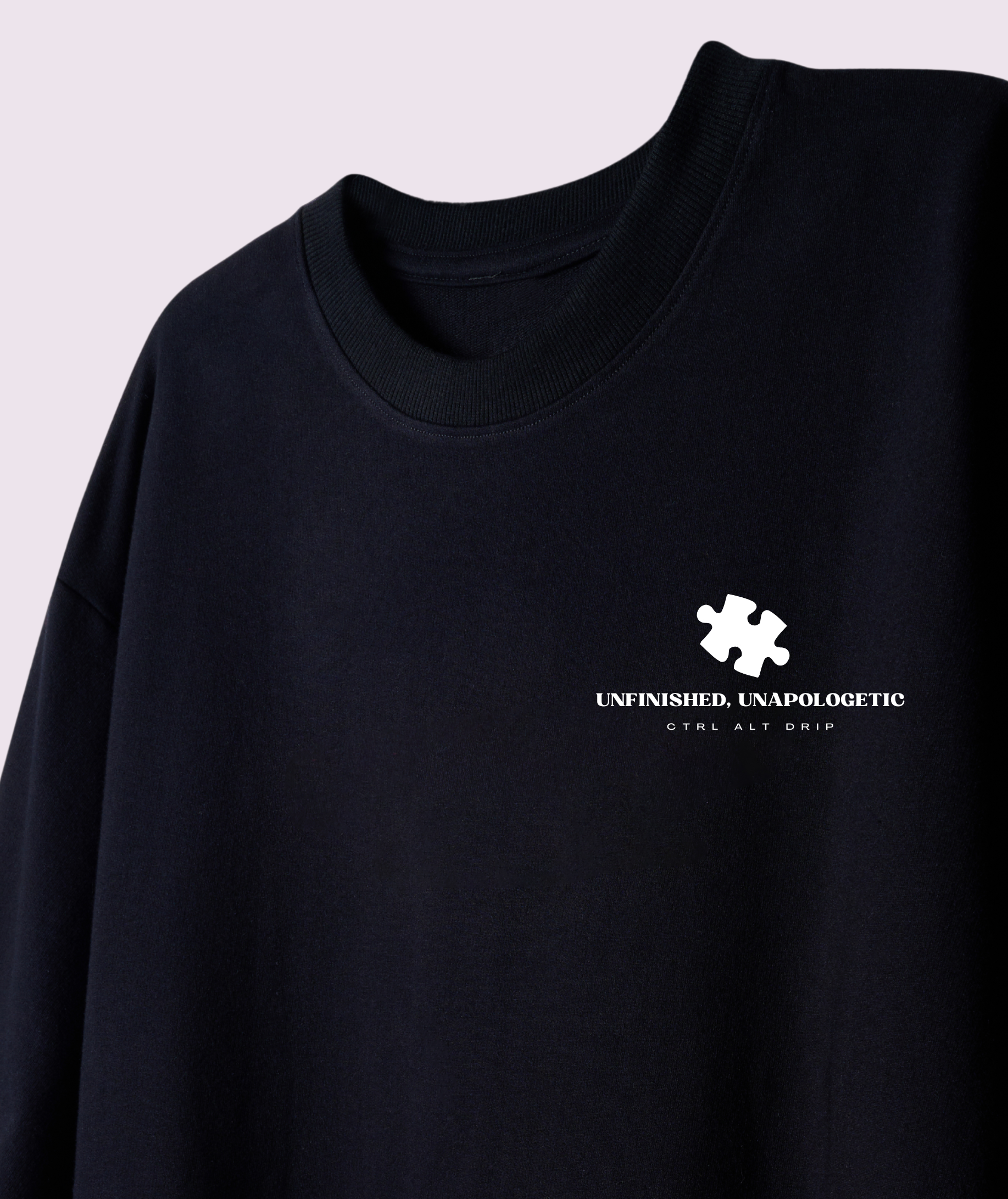 A minimalist puzzle piece takes center stage, paired with the bold declaration: “Unfinished, Unapologetic.” This design reflects individuality, the acceptance of being a work in progress, and the beauty of owning your story as it unfolds. It’s a statement of confidence—embracing the journey rather than seeking perfection.