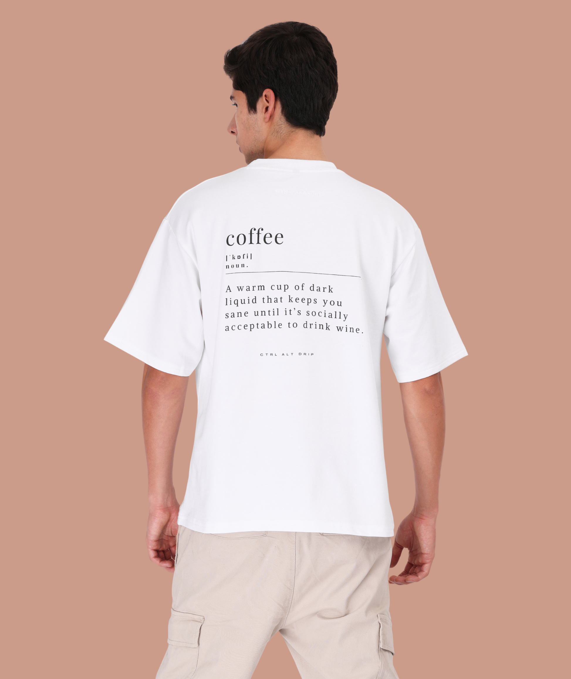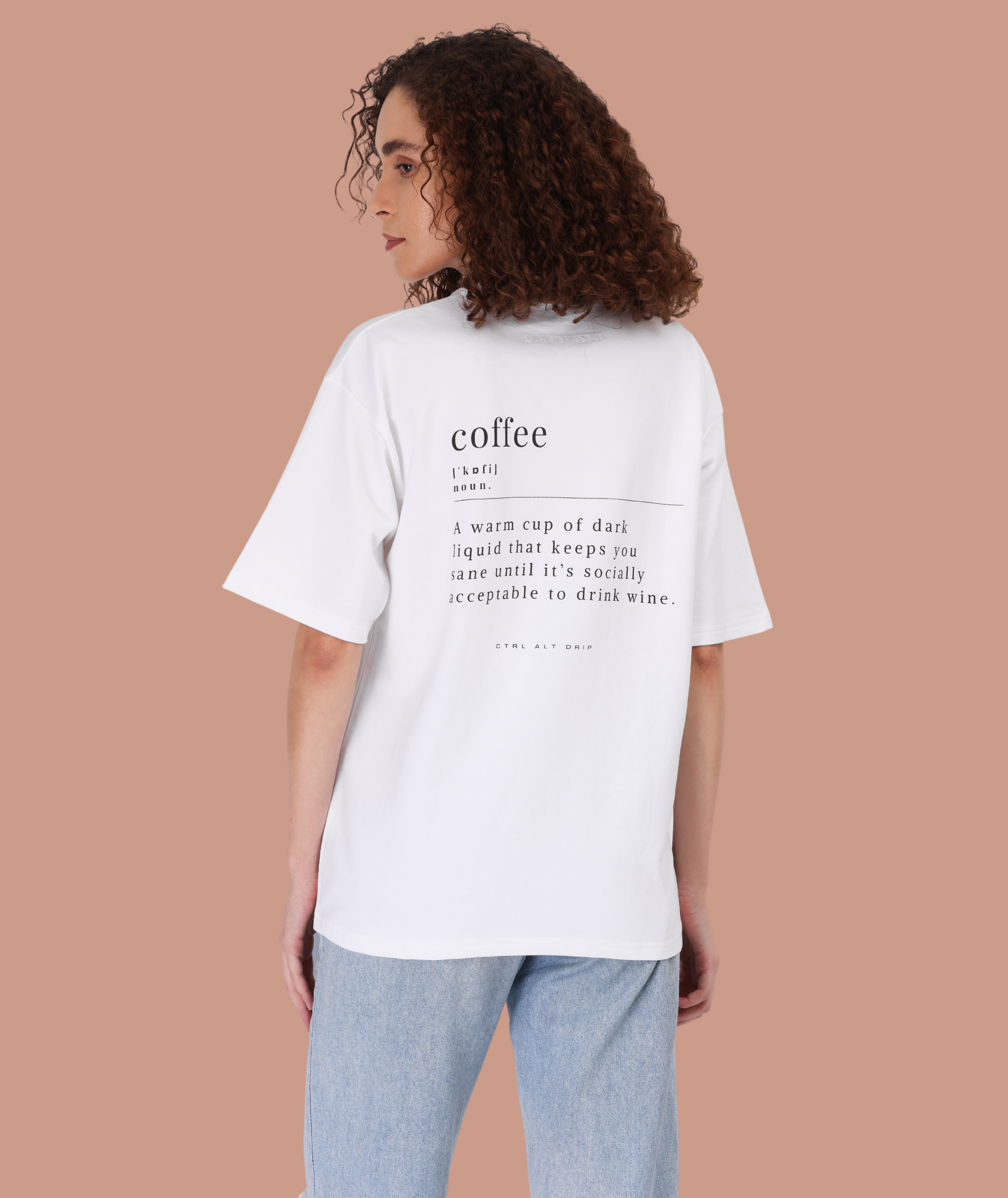 White Overzised 100% Cotton T Shirt. For the ones who cannot function without their daily dose of caffeine and a laugh. 100% Cotton T Shirt.