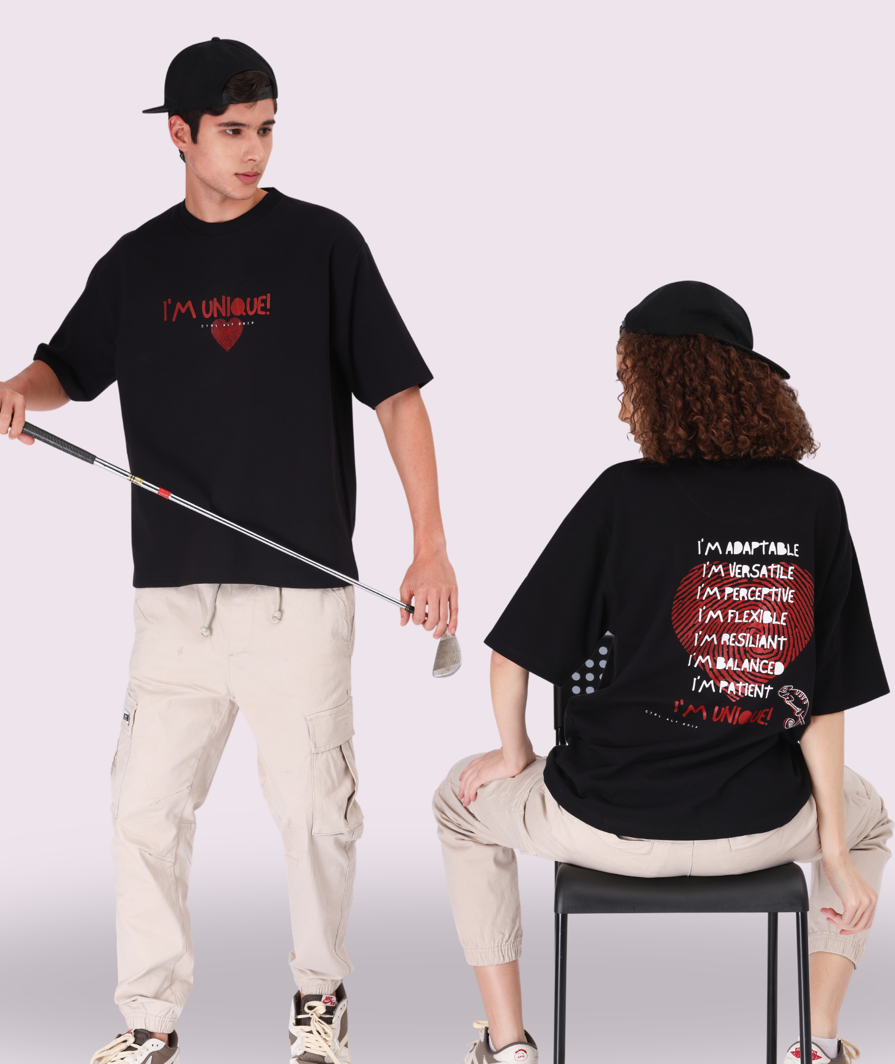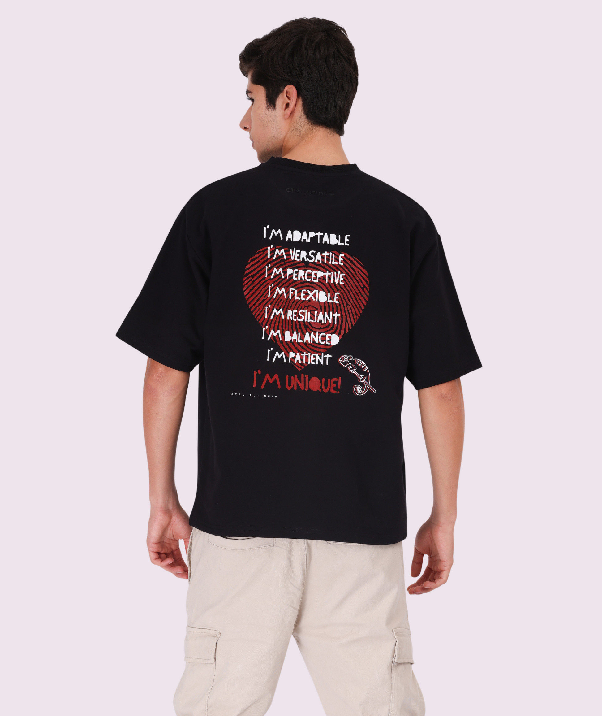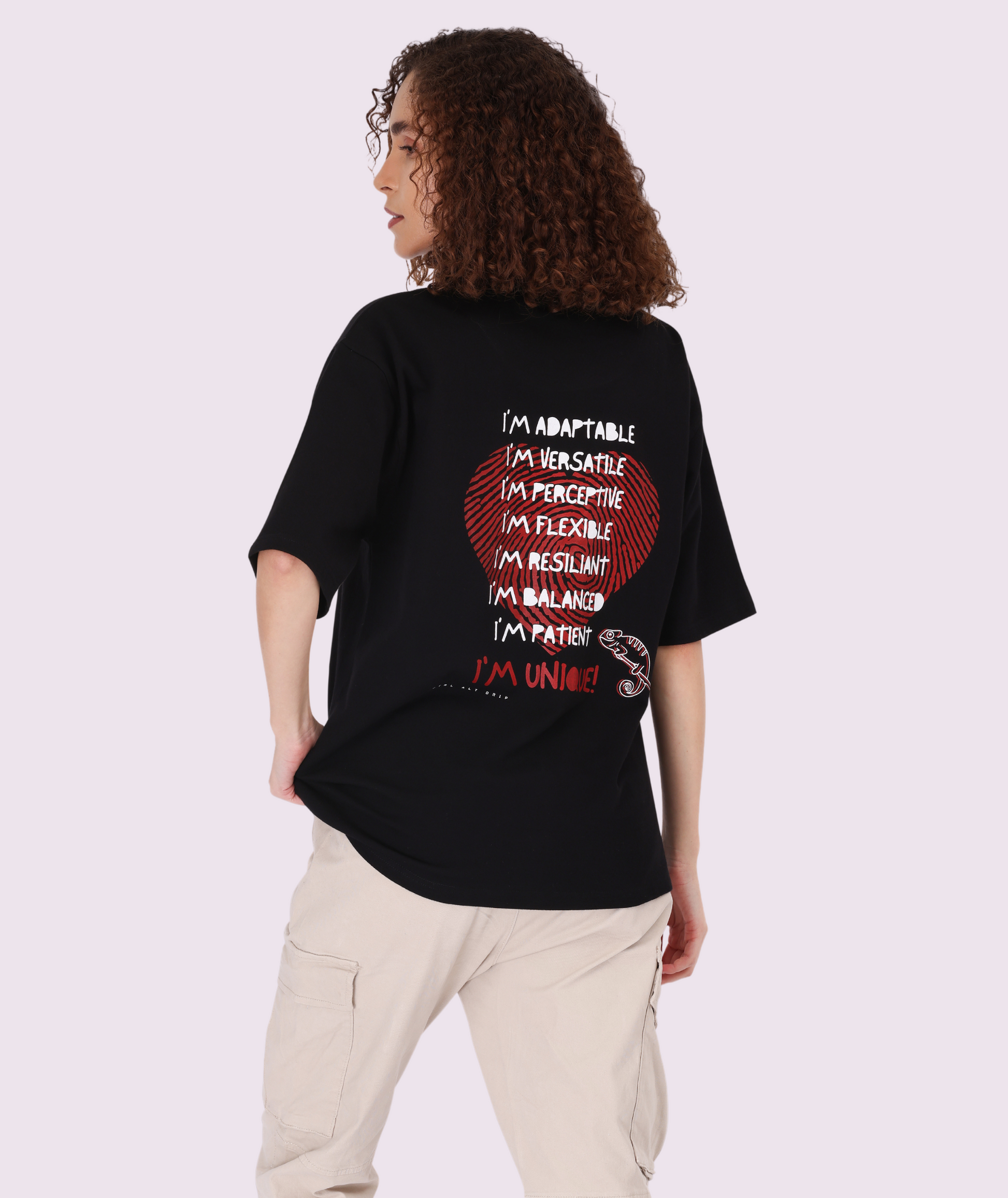 Black Overzised Baggy Meaningful Unique Printed T Shirt. Celebrate your complexities and the essence that makes you one of a kind. 100% Cotton T Shirt.